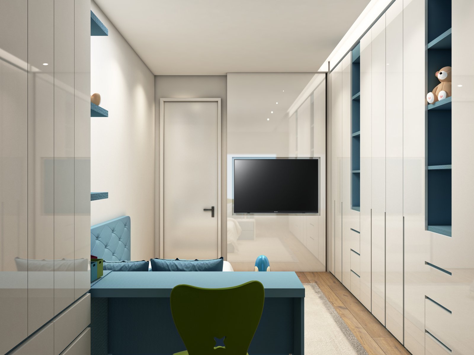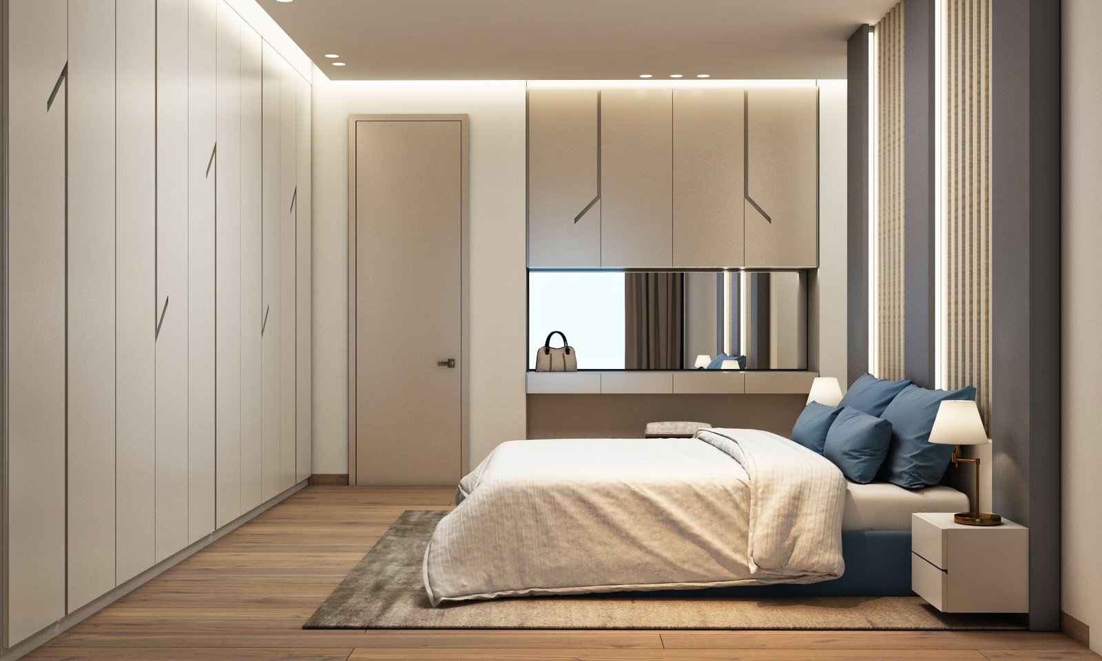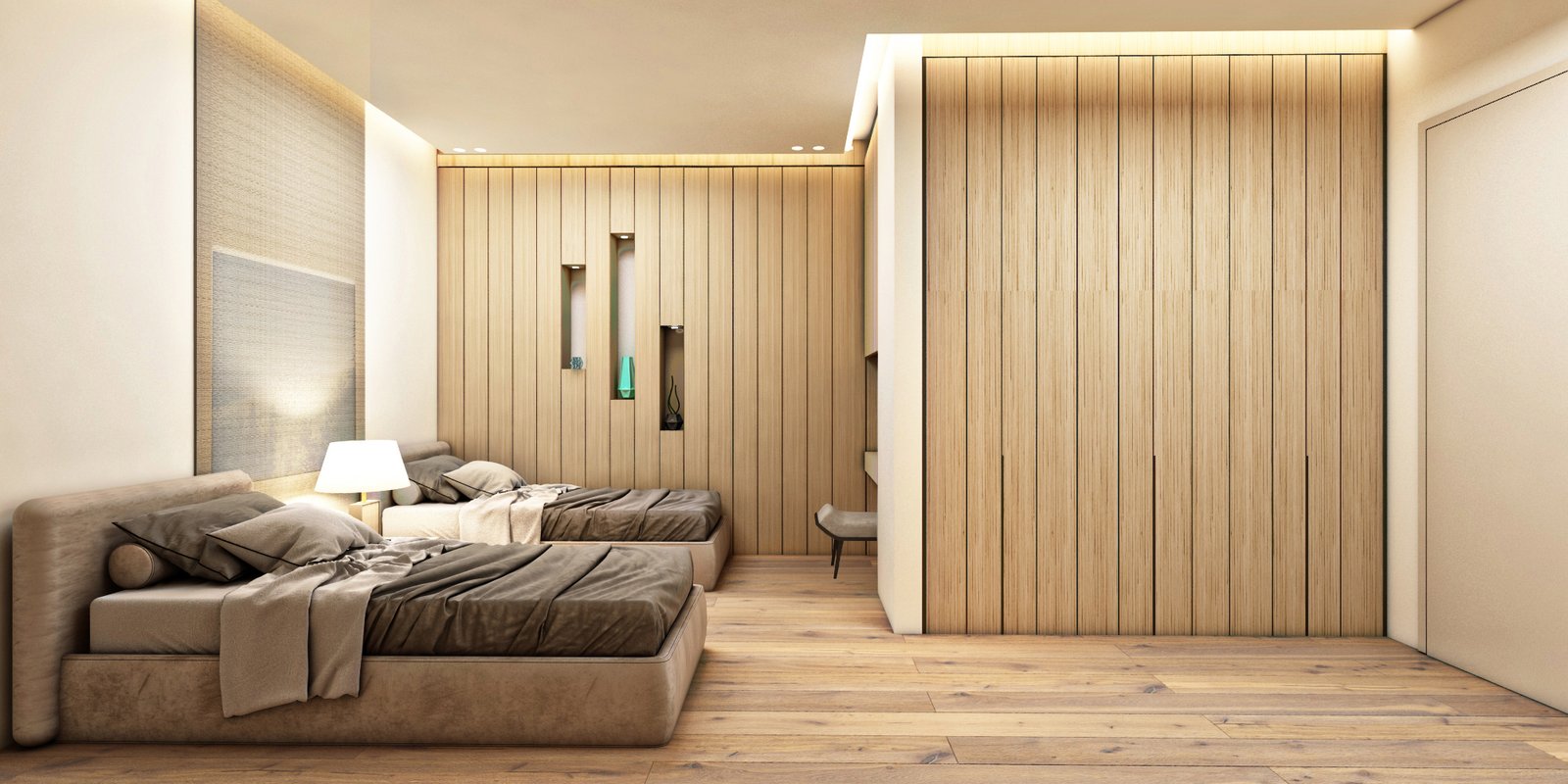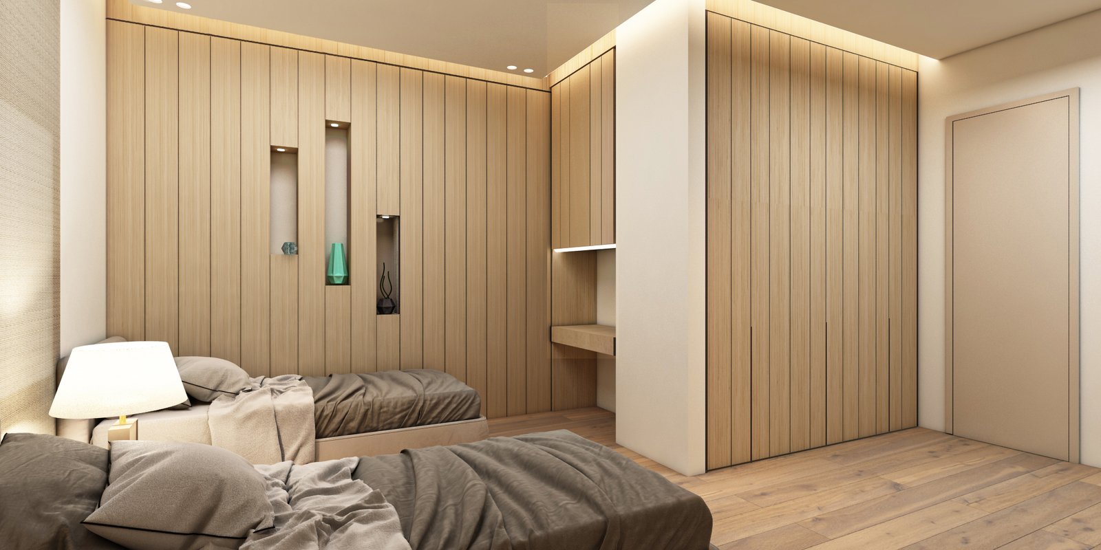 When we presented our concept, the client was thrilled. Each of the four bedrooms not only accommodated all the necessary furniture but also maintained functionality and a sense of spaciousness. We even created a welcoming entrance for these bedrooms, complete with a maid’s room, blending convenience with style.
