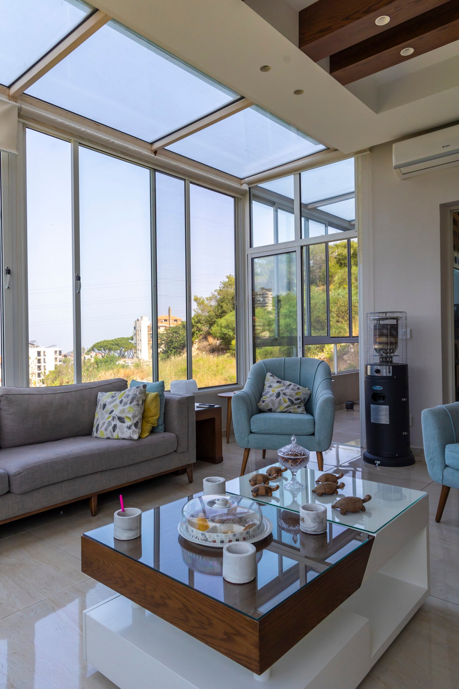 The transformation of the balcony into a stunning terrace was a highlight, offering a panoramic view of nature and a sky view through a glass ceiling that bathed the space in natural light.